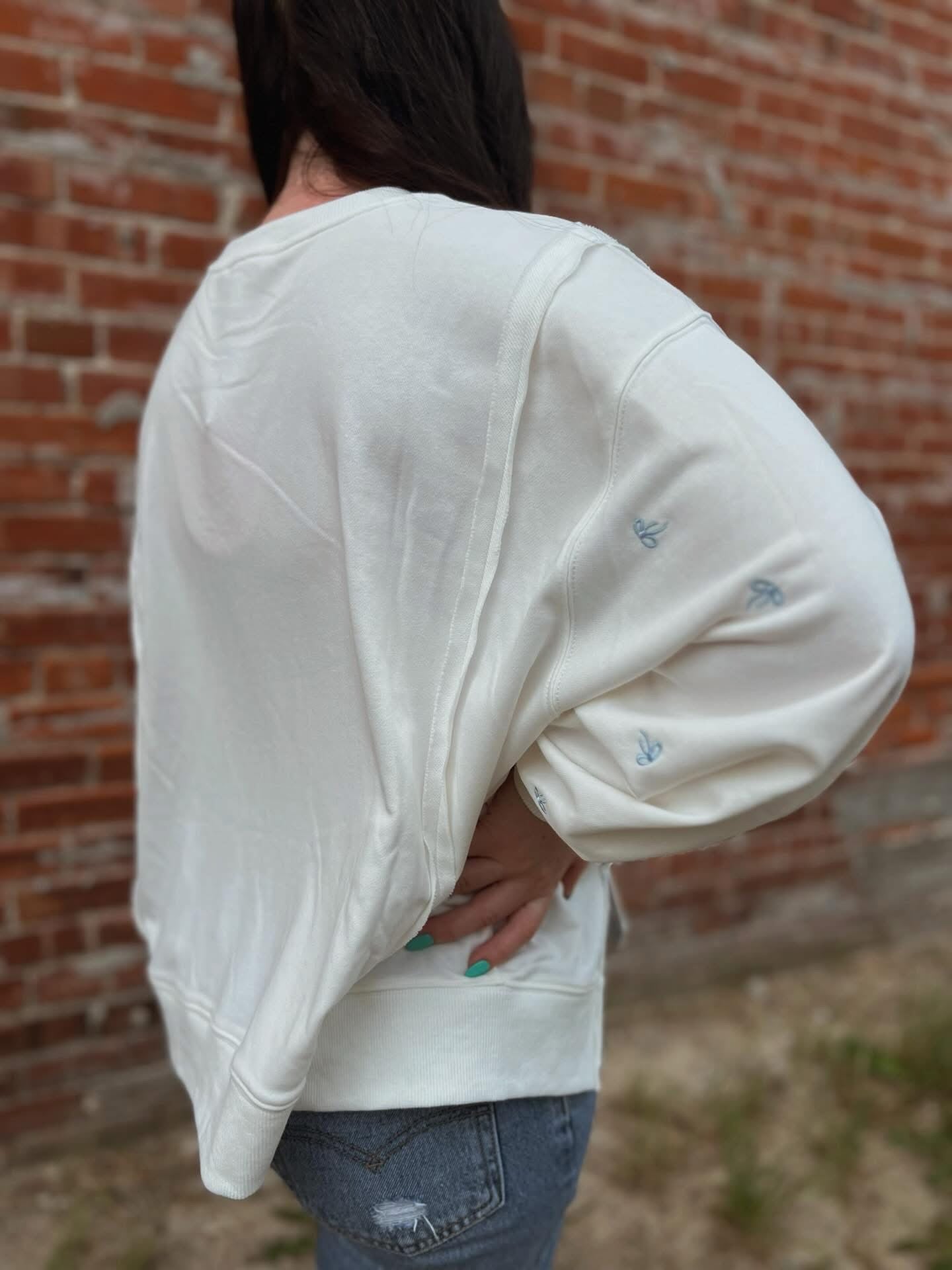 Oversized Crewneck With All Over Ribbon Bow Ditsy Embroidery 80% COTTON 20% POLYESTER