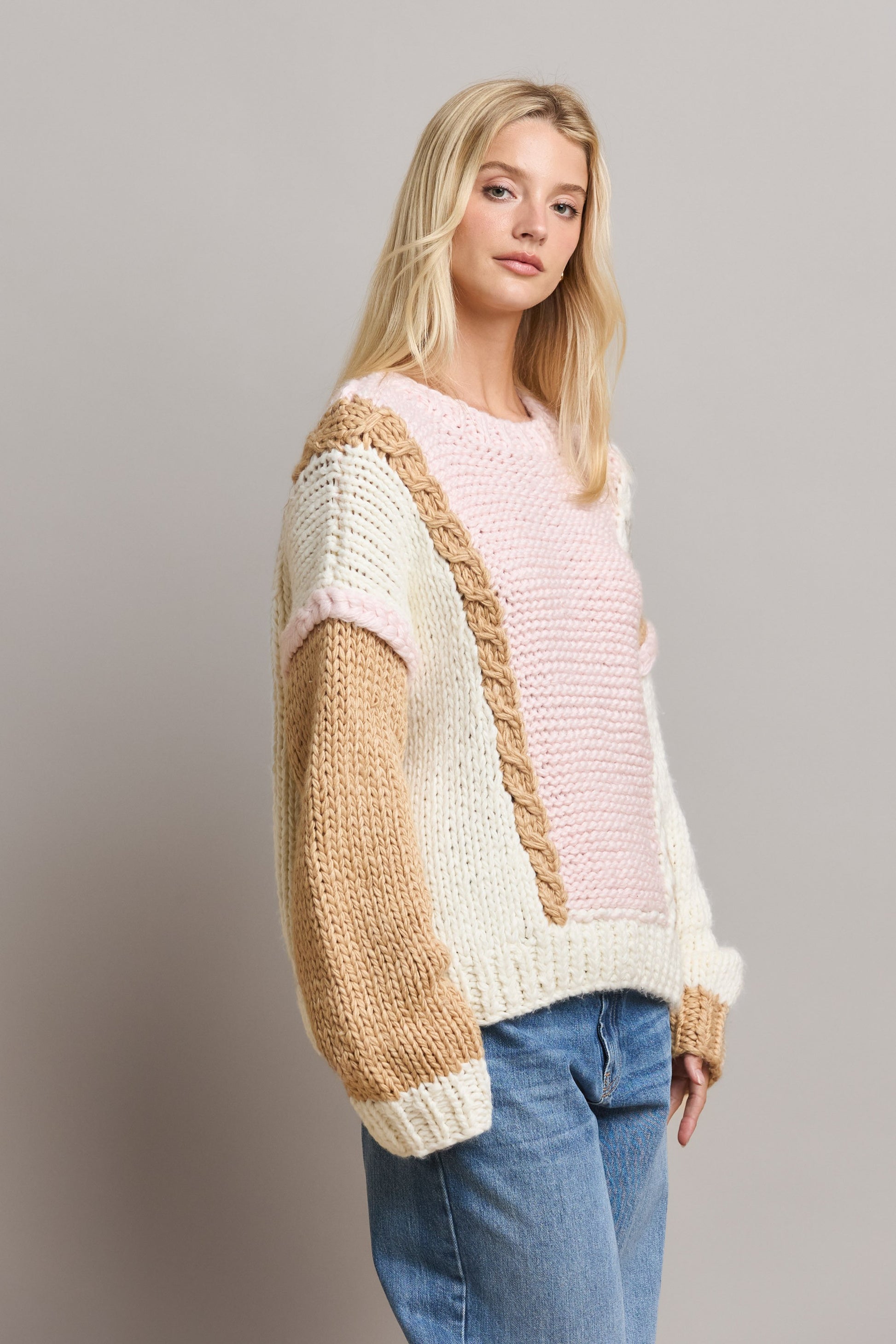 Colorblock Chunky Sweater - Long sleeves - Braided detail