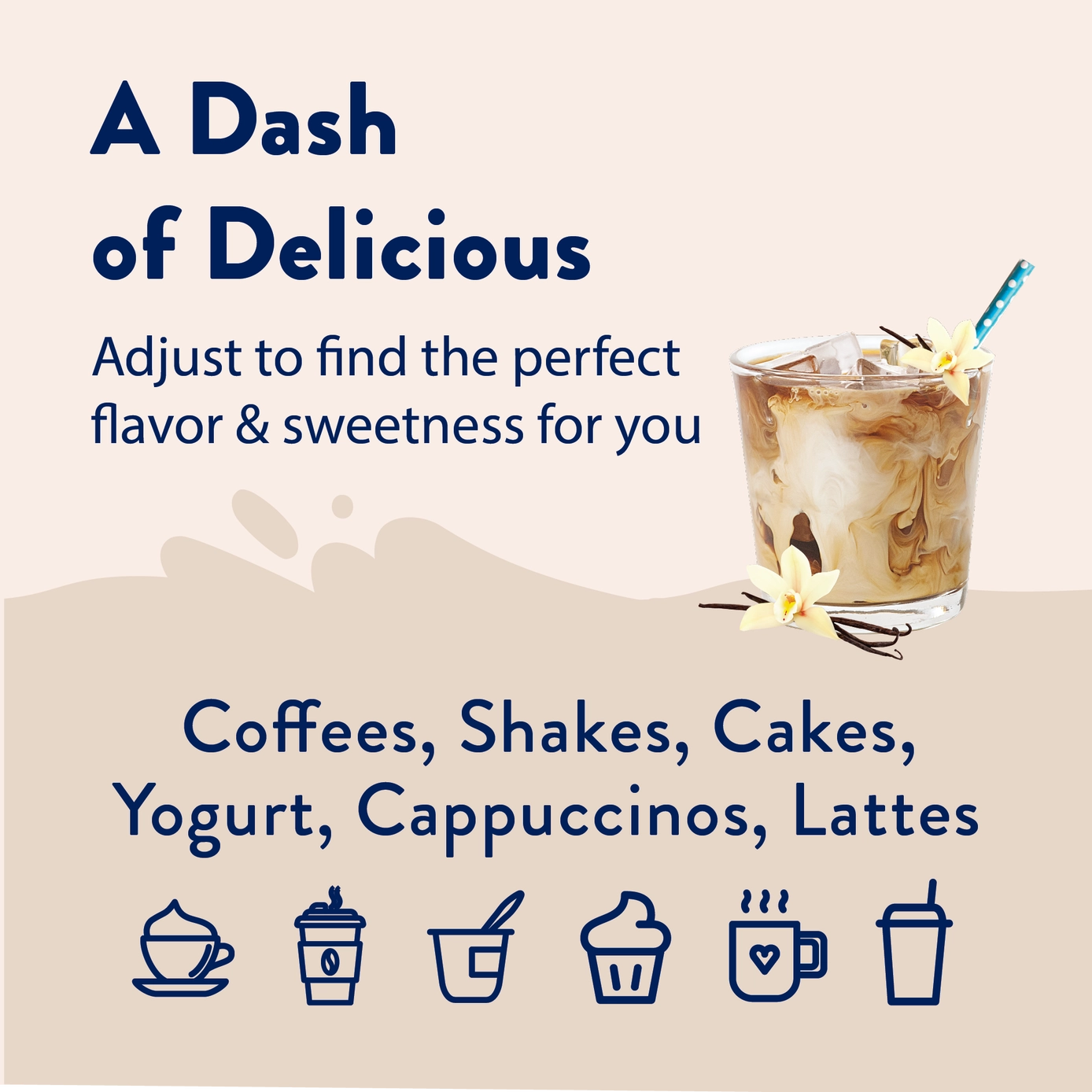 Sweetened Vanilla Bean syrup provides all the smooth and buttery flavor of classic vanilla, but NONE of the calories or sugar. Naturally sweetened with stevia, monk fruit, and erythritol. More natural, more flavor, 0 calories, 0 sugar. 🚫 0 calories. 0g sugar. 6g carbs. 🔢 375 ml/12.7 fl. oz. Bottle - 13 Servings! ✅ Gluten-Free & Kosher. 🌱 No artificial sweeteners or flavors 🥛 Dairy-free. 🇺🇸 Made in the USA. 🧊 Refrigeration not required. Flavor Notes: Rich, smooth, creamy flavor with sweet, buttery vanilla aroma. Add guilt-free flavor to coffees, lattes, tea, protein shakes, smoothies, baking, oatmeal, yogurt, overnight oats, or just about anything