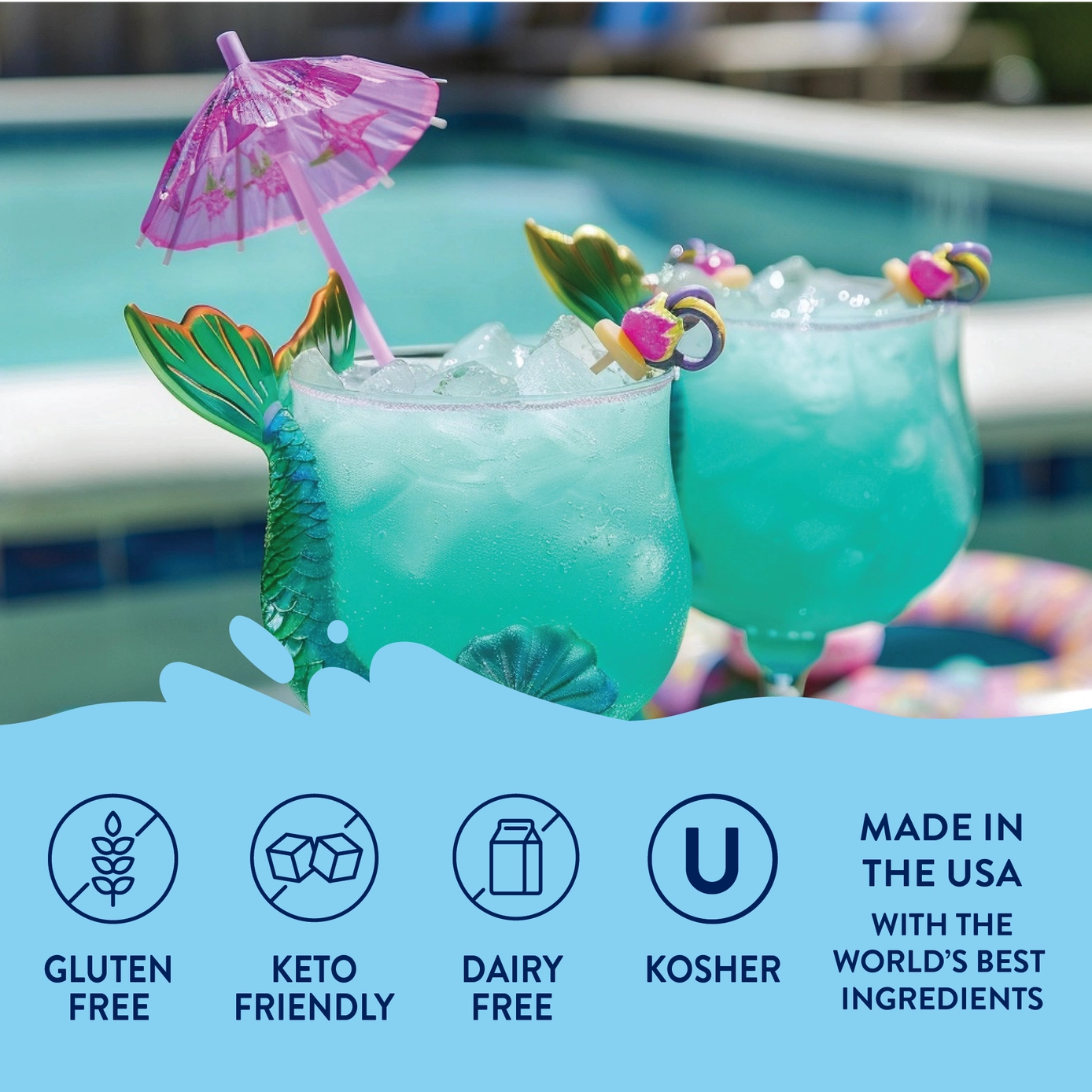 After tasting lots of different flavors and asking a lot of Mermaids, we finally made the perfect Mermaid™ flavor...tropical citrus, coconut, a little pineapple and a lot of magic. Perfect for cocktails, tea, water, lemonade, shakes, baking & more! 🚫 0 Calories. 0 Sugar. 0 Carbs. 💰 750 ml/25.4 fl. oz. Bottle - 25 Servings! ✅ Gluten-Free & Kosher. 🌱 Keto-Friendly. 🇺🇸 Made in the USA.