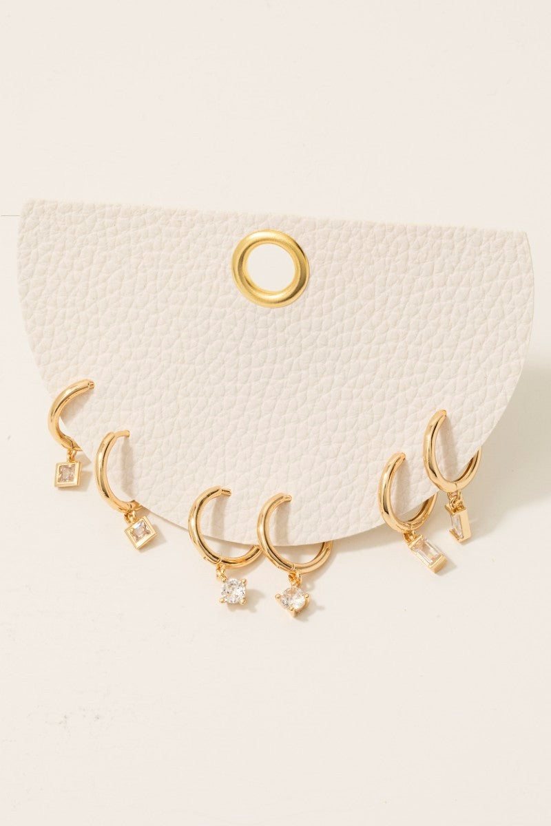Three Pair Rhinestone Drop Hoop Earrings Set
